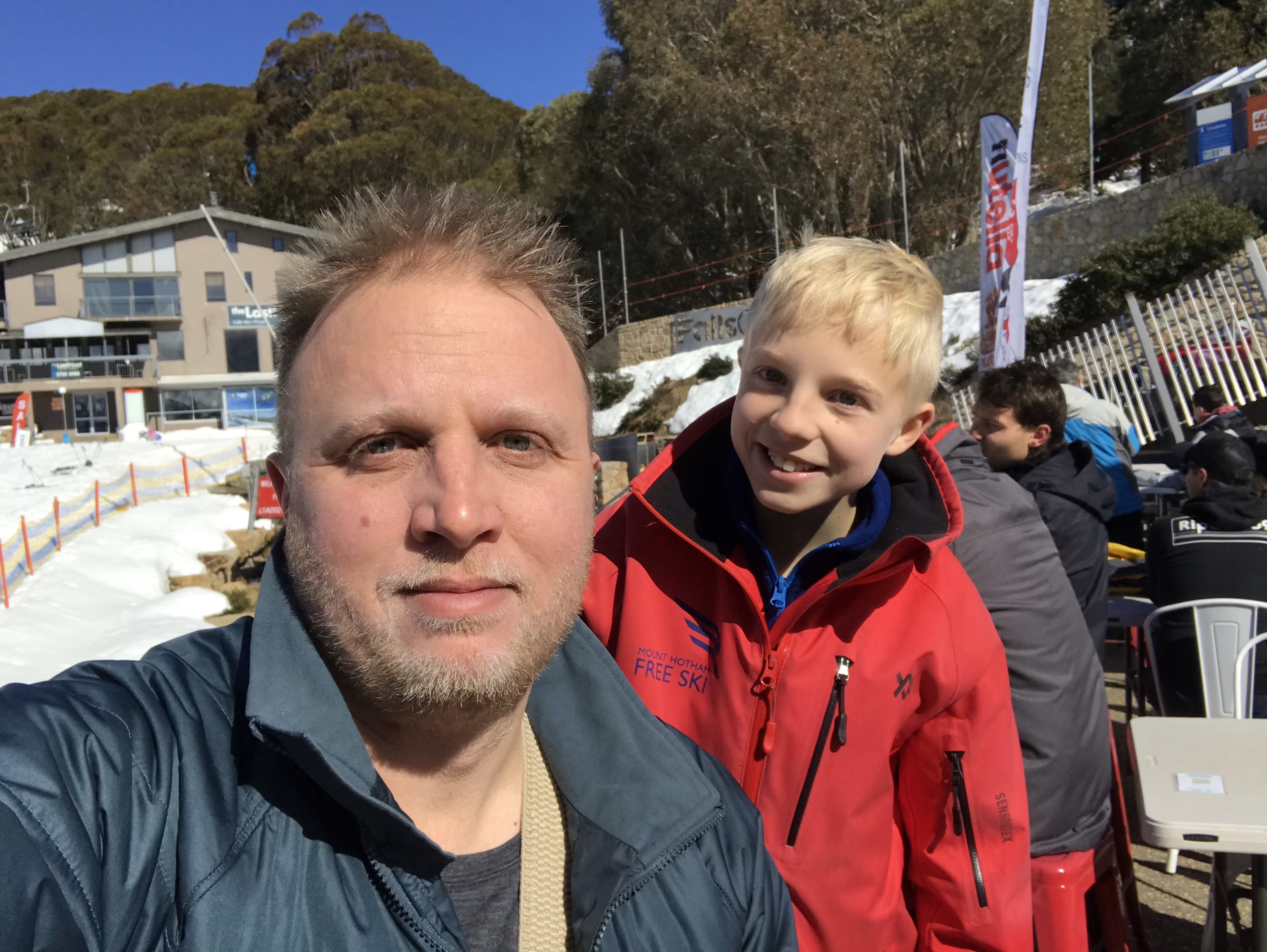 While Patrick tried some skiing near the lodge I think he much preferred “bogganing” and his absolute favourite was catching buses each day to get the lollie pops. Seb’s skiing hit new heights especially after he was able to join the Hotham Free Ski Club. Its first year where dad conceded that his son has him covered and is better and a more technically developed skier. I will not be trying the tricks or the jumps!!!