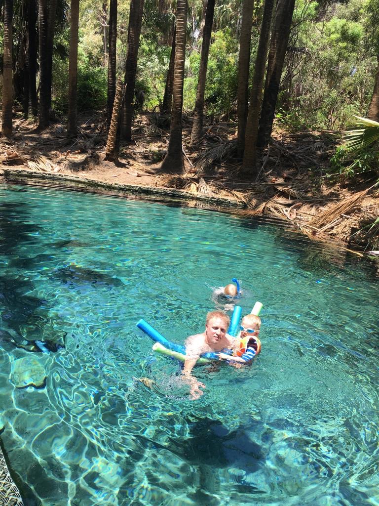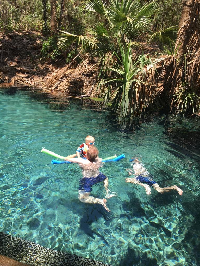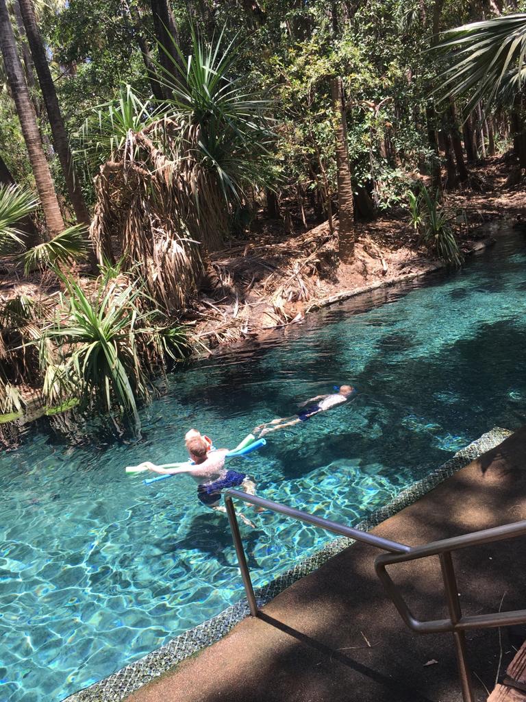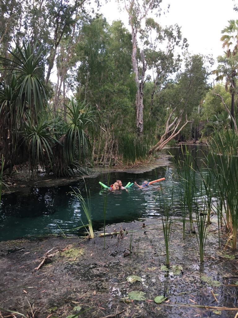 The next day we visited Mataranka springs. Much smaller and more man made infrastructure capturing the actual pools than Bitter Springs. They were also very picturesque BUT.… the smell and sight of 1,000s of bats was very off putting. Nevertheless we all jumped in for a quick swim. Wasn’t until Ania’s “favourite” mammals decided to take revenge for her years of studying their viruses by pooping a few times directly on her. That was a cue for us to head back.