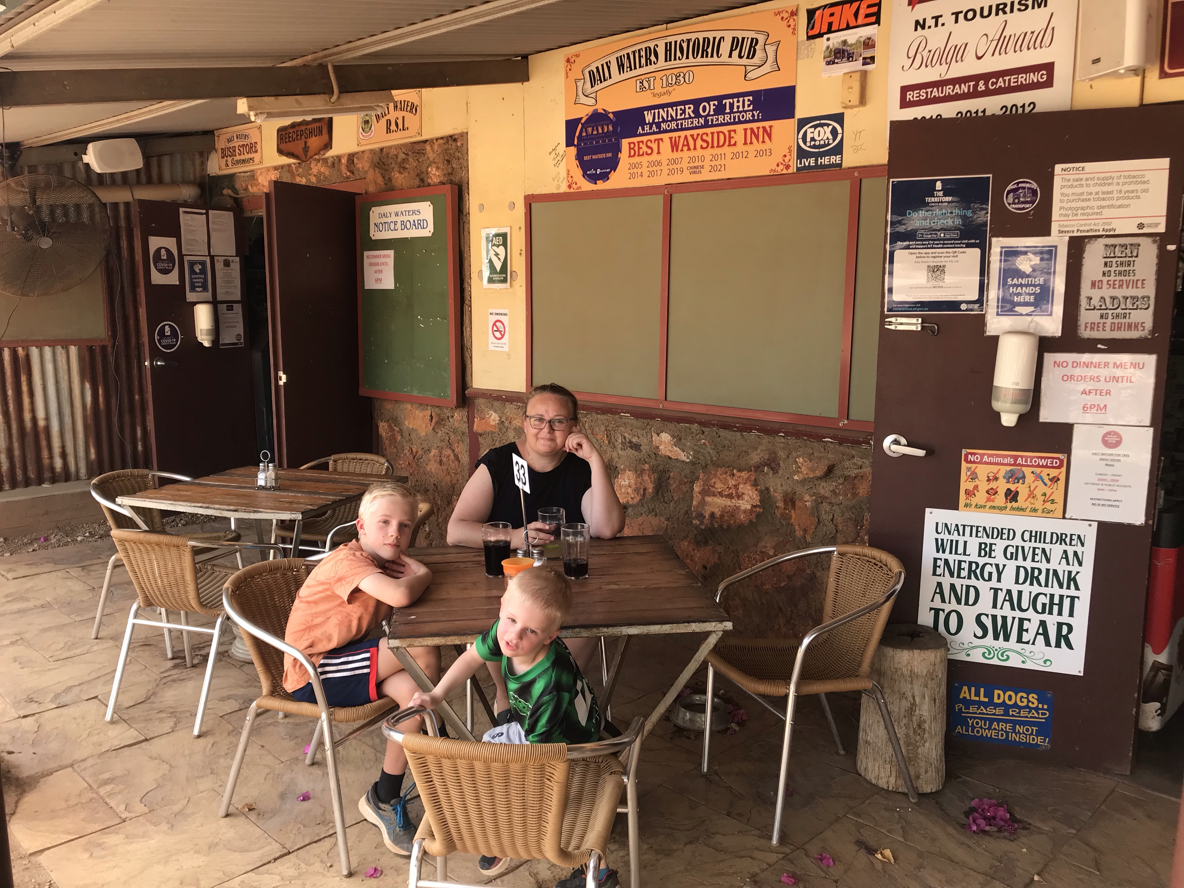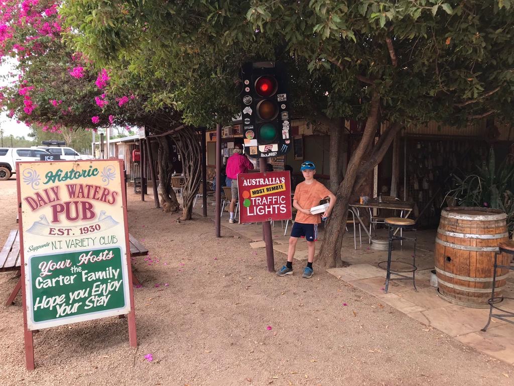 Another big day of driving today with 612 kms all the way to Banka Banka Station. On the way we explored the Devils Marbles Conservation Reserve. Awesome rock formations. Banka Banka station is a lovely place to stay but in the spirit of moving north fast we left early in the morning. On the way to Mataranka we took a slight detour to enjoy lunch in the famous Daly Waters pub. We had some tasty Barra burgers. This place is awesome and full of character. First day of 40 deg, it’s getting HOT.